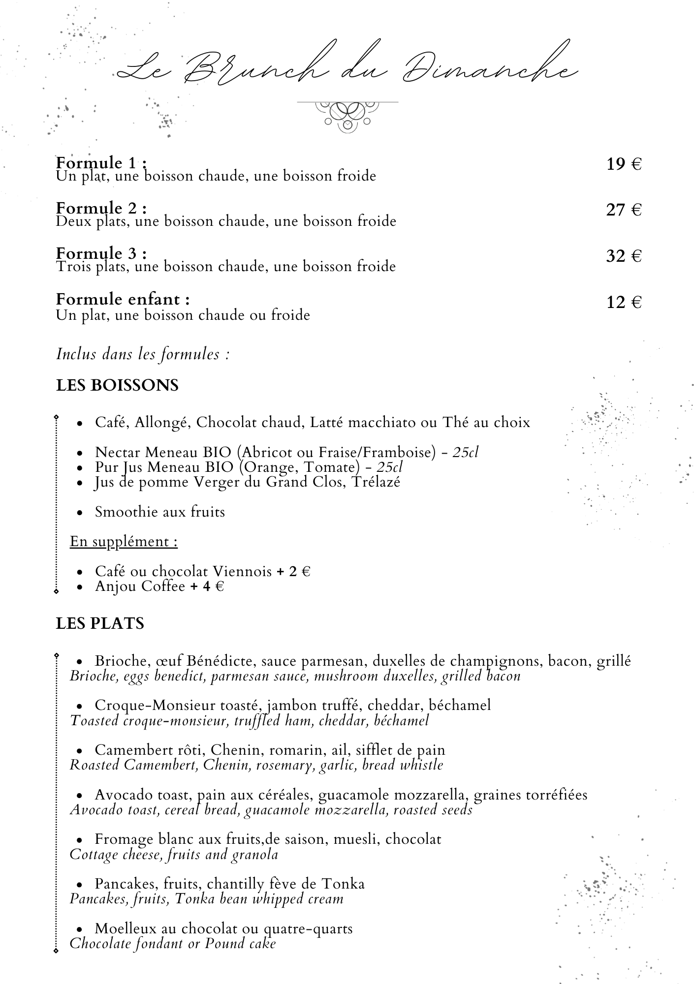 Pour le brunch nous proposons deux créneaux un à 11h et un autre à 13h
